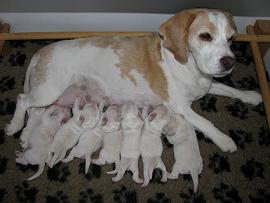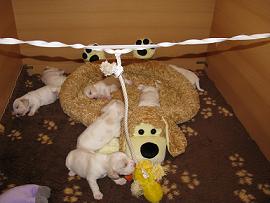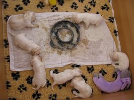die Hündinnen 4 Wochen alt