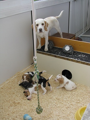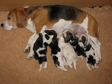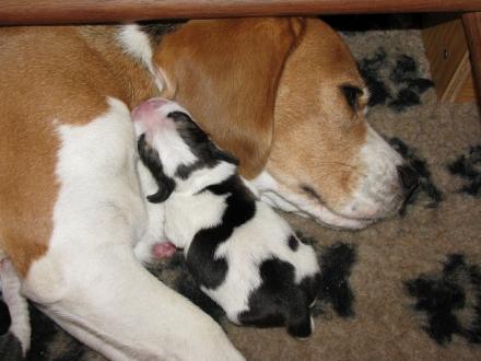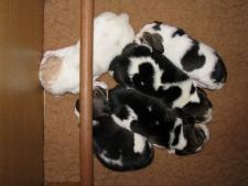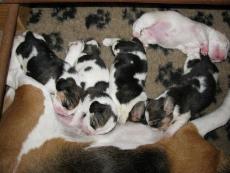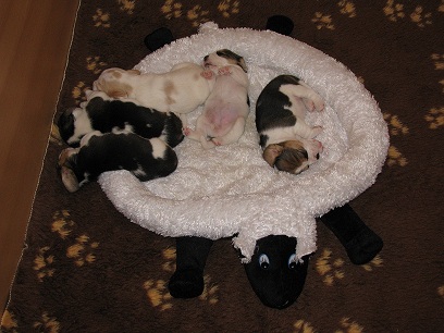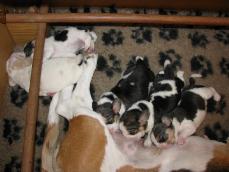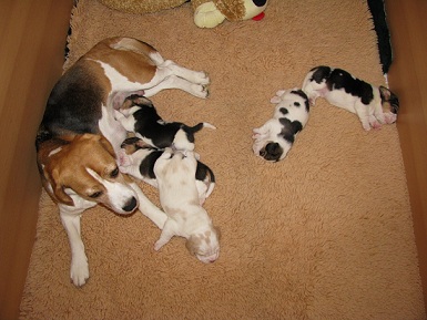 2 Rüden / 3 Hündinnen meine Mama und ich nachher am 10.04.12 hat unsere Nigthy 5 gesunde Welpen in 1 Std und 45 Min zur Welt gebracht!! vorher 50. Tag der Trächtigkeit Nigthy 6. Woche tragend