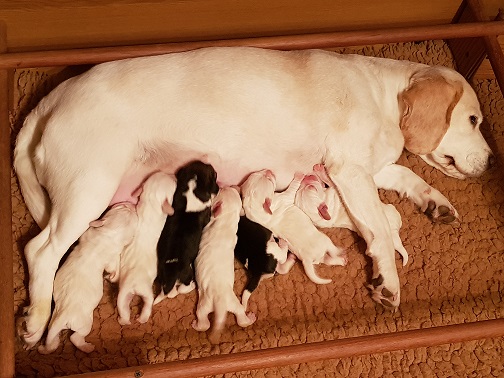 am 31.03.2018 hat uns Viona mit dem Osterhasen 7 Sternchenwelpen gebracht. Es sind 4 Rüden bicolour, 1 Rüde tricolour, 1 Hündin tricolour und 1 Hündin bicolour. Viona und den Kleinen geht es bestens.