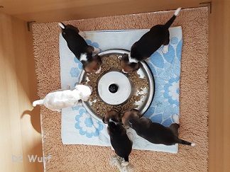 Heute am 09.04.2021 sind wir 4 Wochen alt und bekommen schon richtiges Welpenfutter