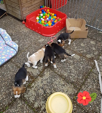2 Rüden tricolour 2 Hündinnen tricolour 1 Hündin bicolour