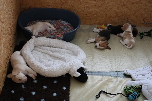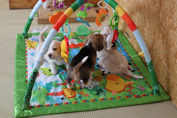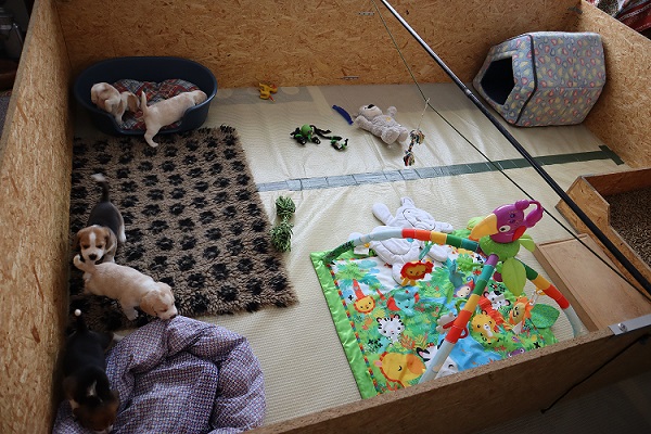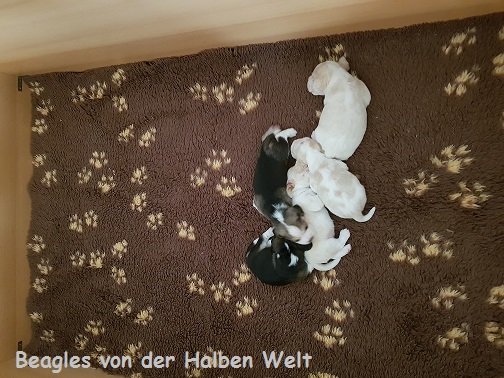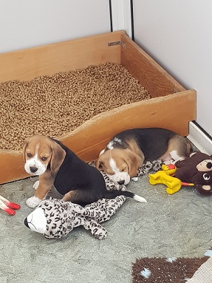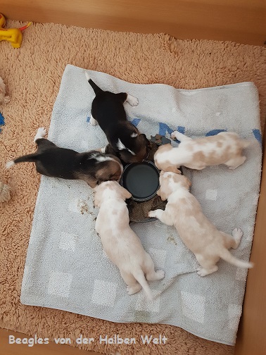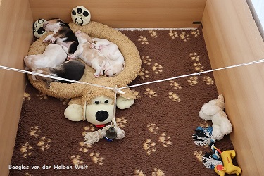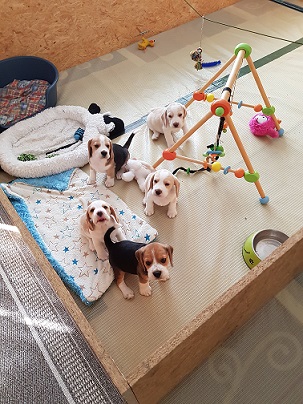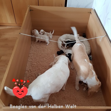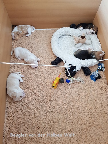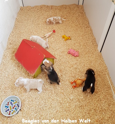 Heute am 09.05.2023 sind wir 5 Wochen alt und ins große Spielzimmer umgezogen